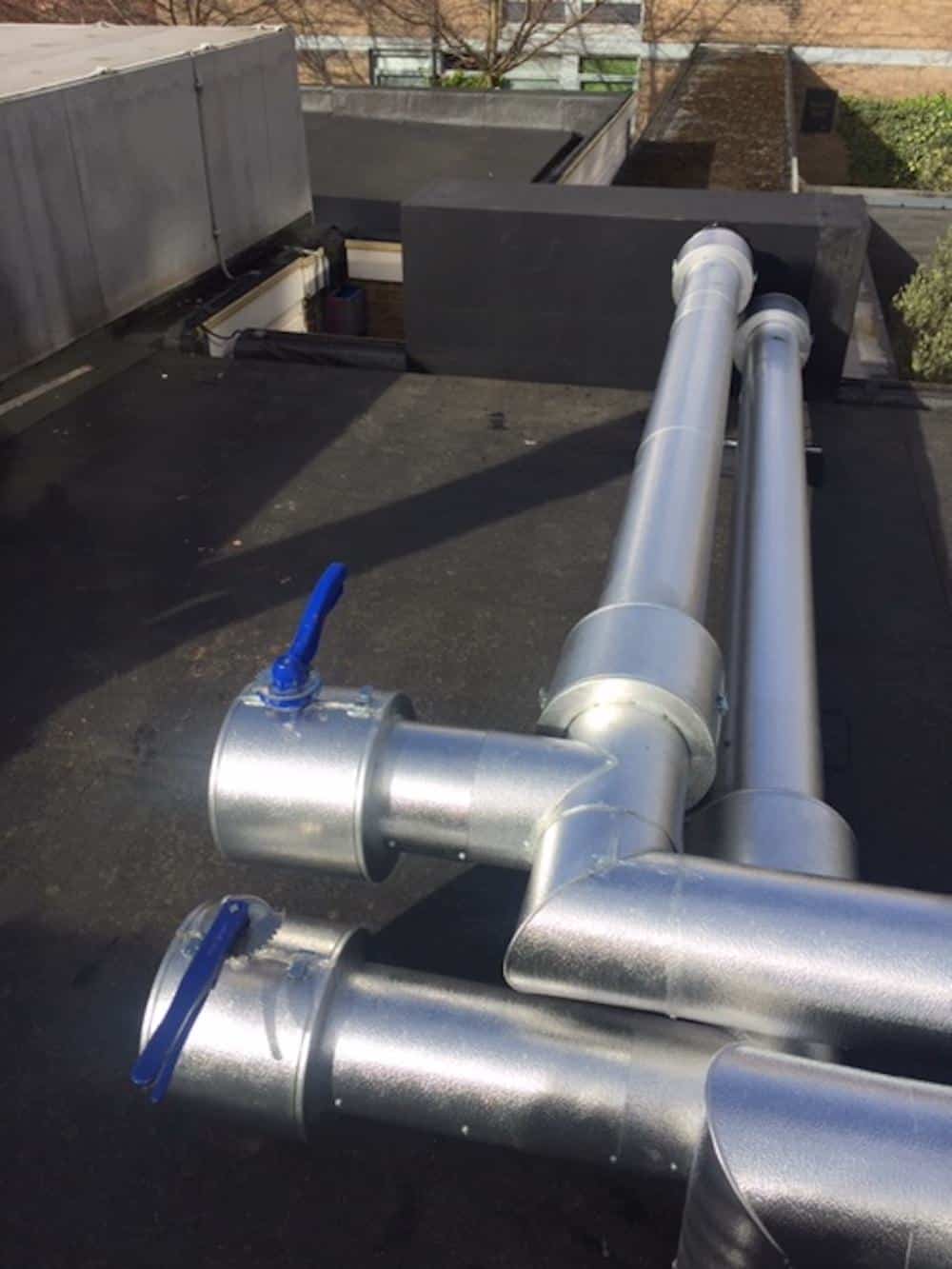 And then after fitting into place the two x 90Kw boilers, designed to fulfil the requirement of 140Kw for heating and 30Kw for hot water.