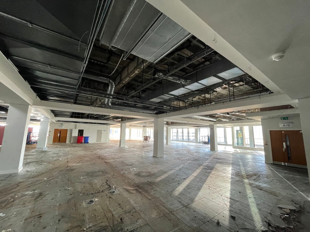 With one of the key aims being to improve occupancy numbers within the space the first job was to completely rip out all of the existing fittings and structural walls where required, throughout the floorplate. It’s a huge space at 45,000 sq ft in total and is believed to be the biggest open plan floor space in Liverpool. The suspended ceiling was taken out to access the HVAC and electrical services above.