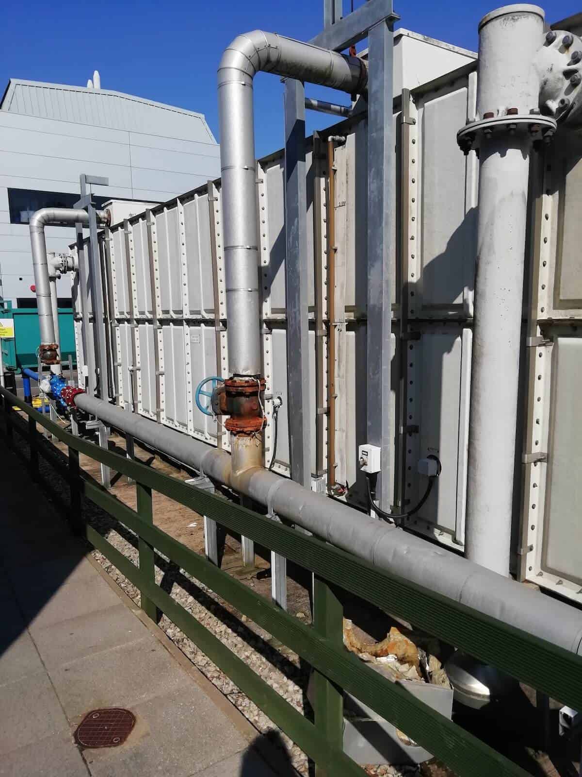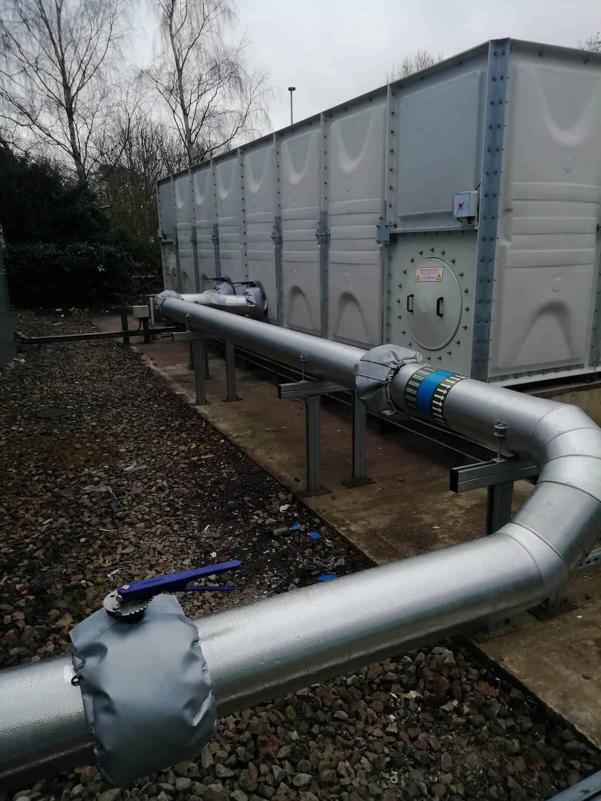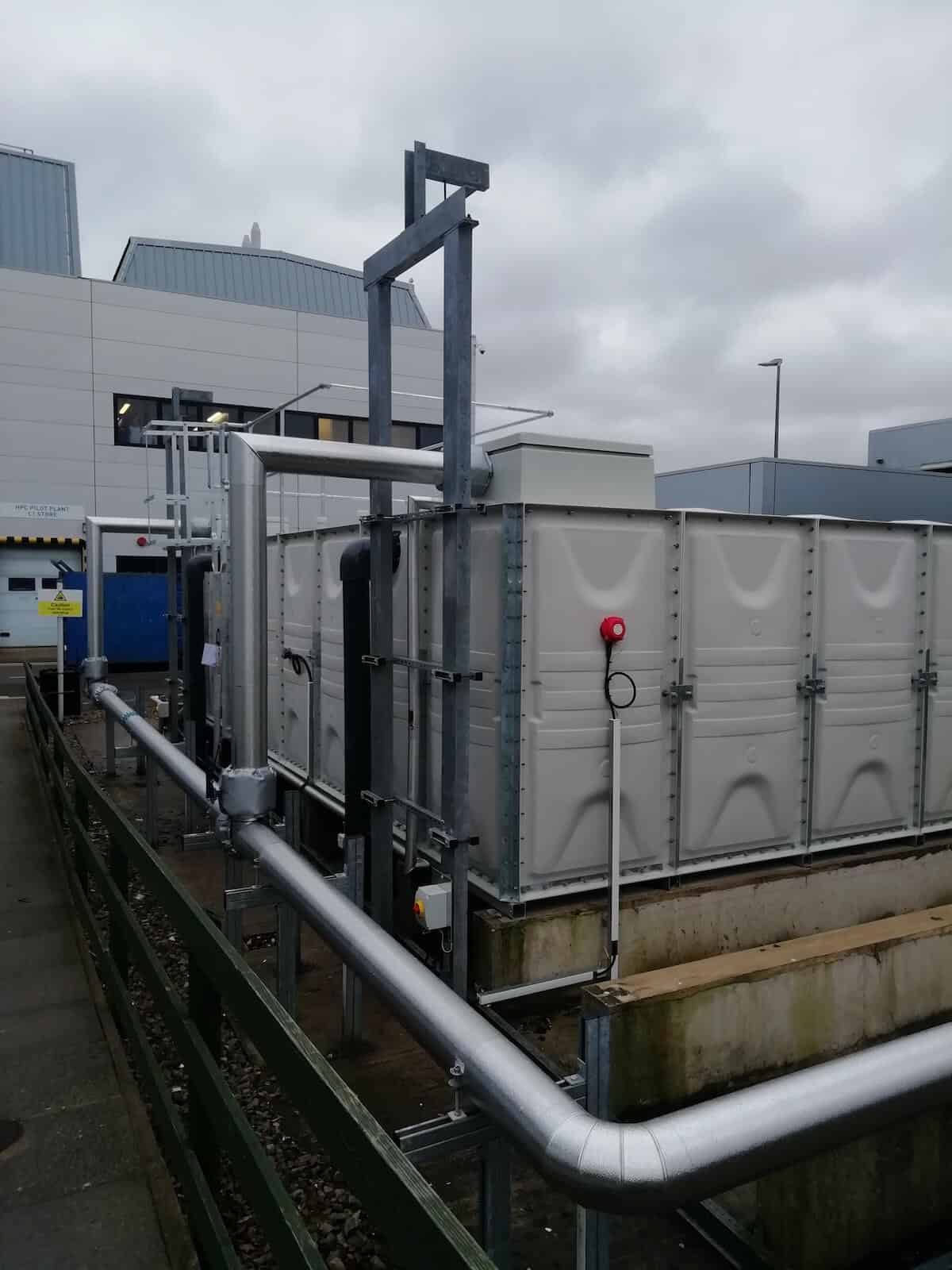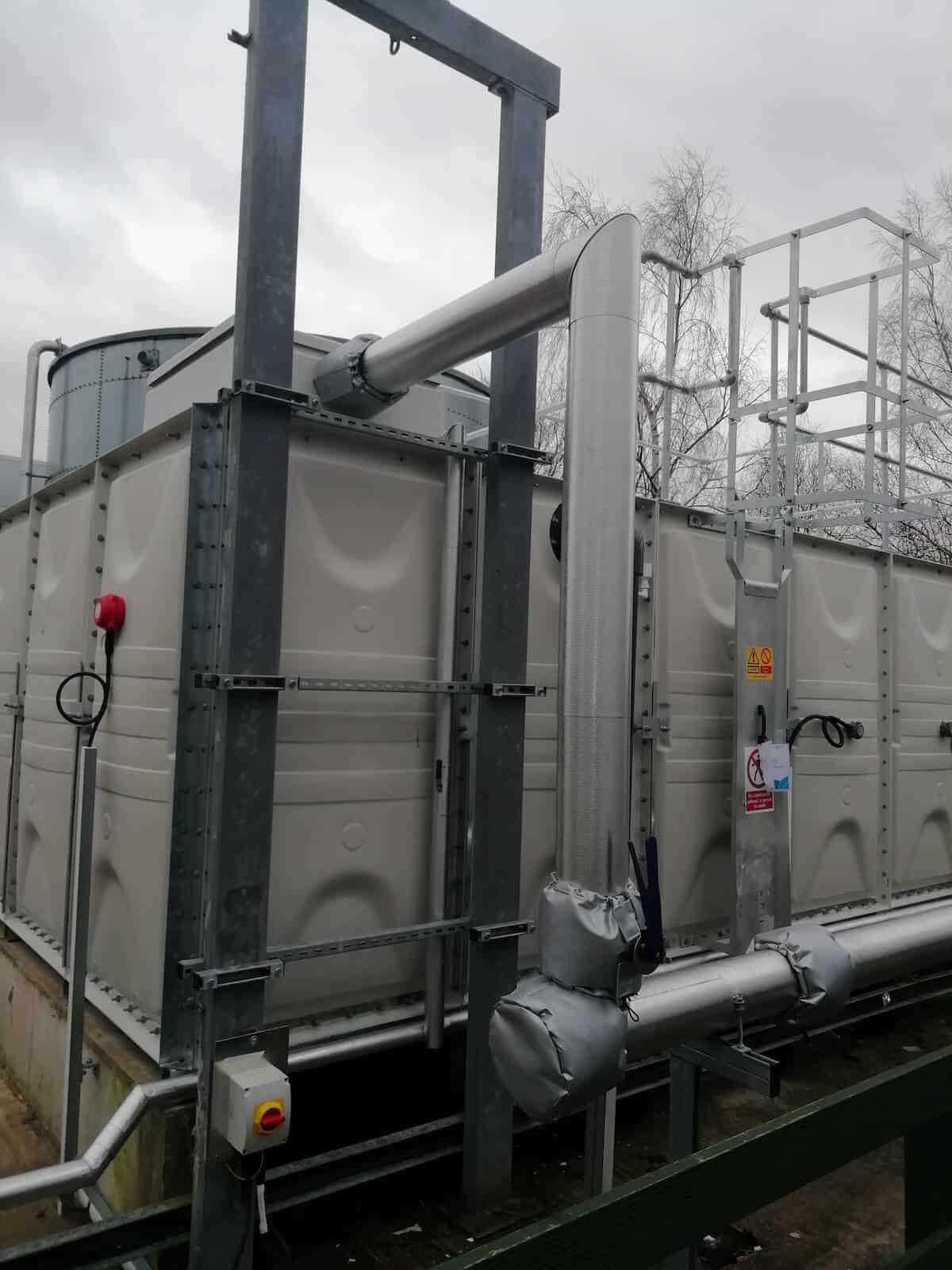 To prevent freezing anywhere in the system there are also two immersion heaters inside the tank and trace heaters on the incoming pipework, again linked to the BMS.