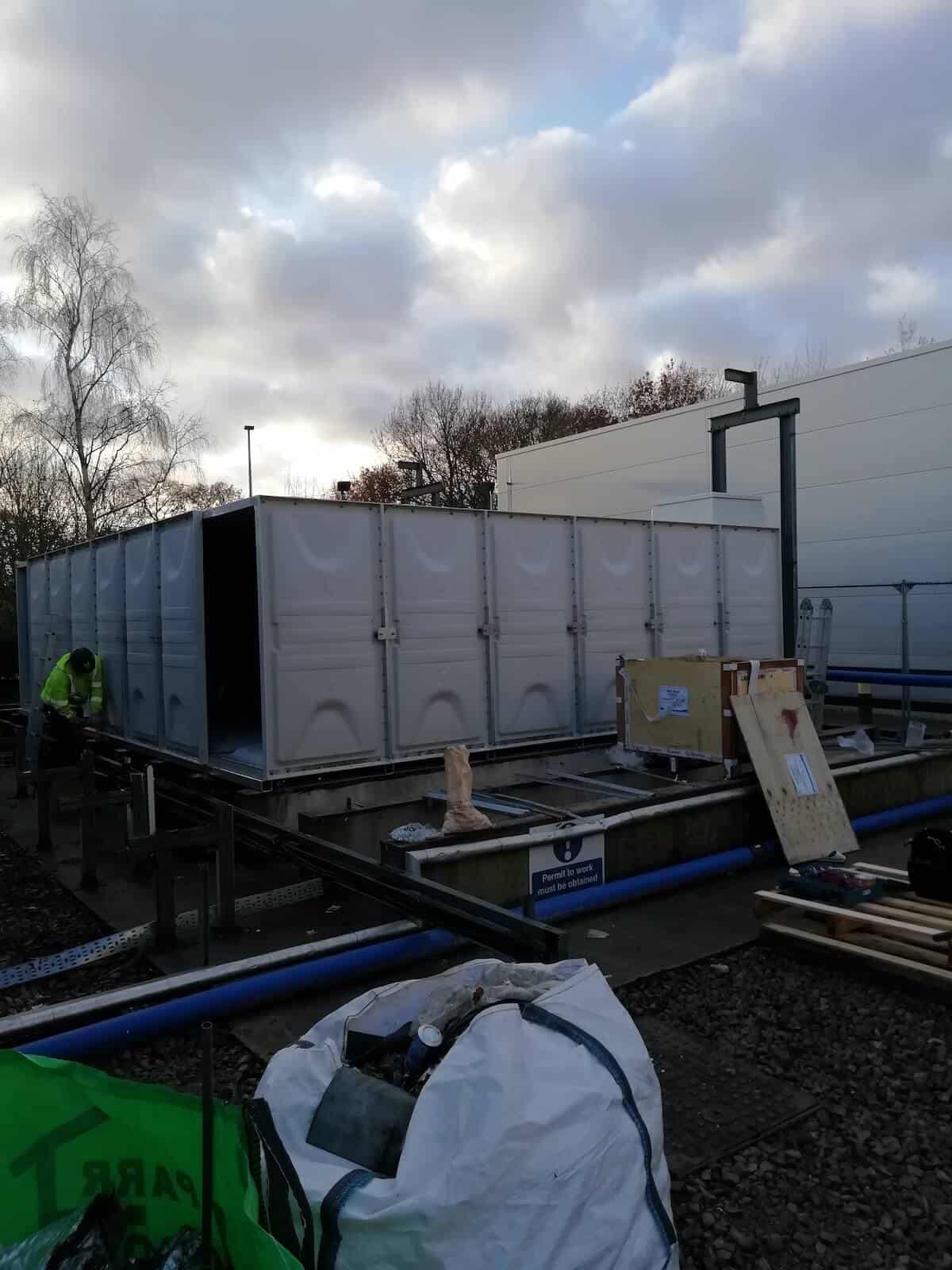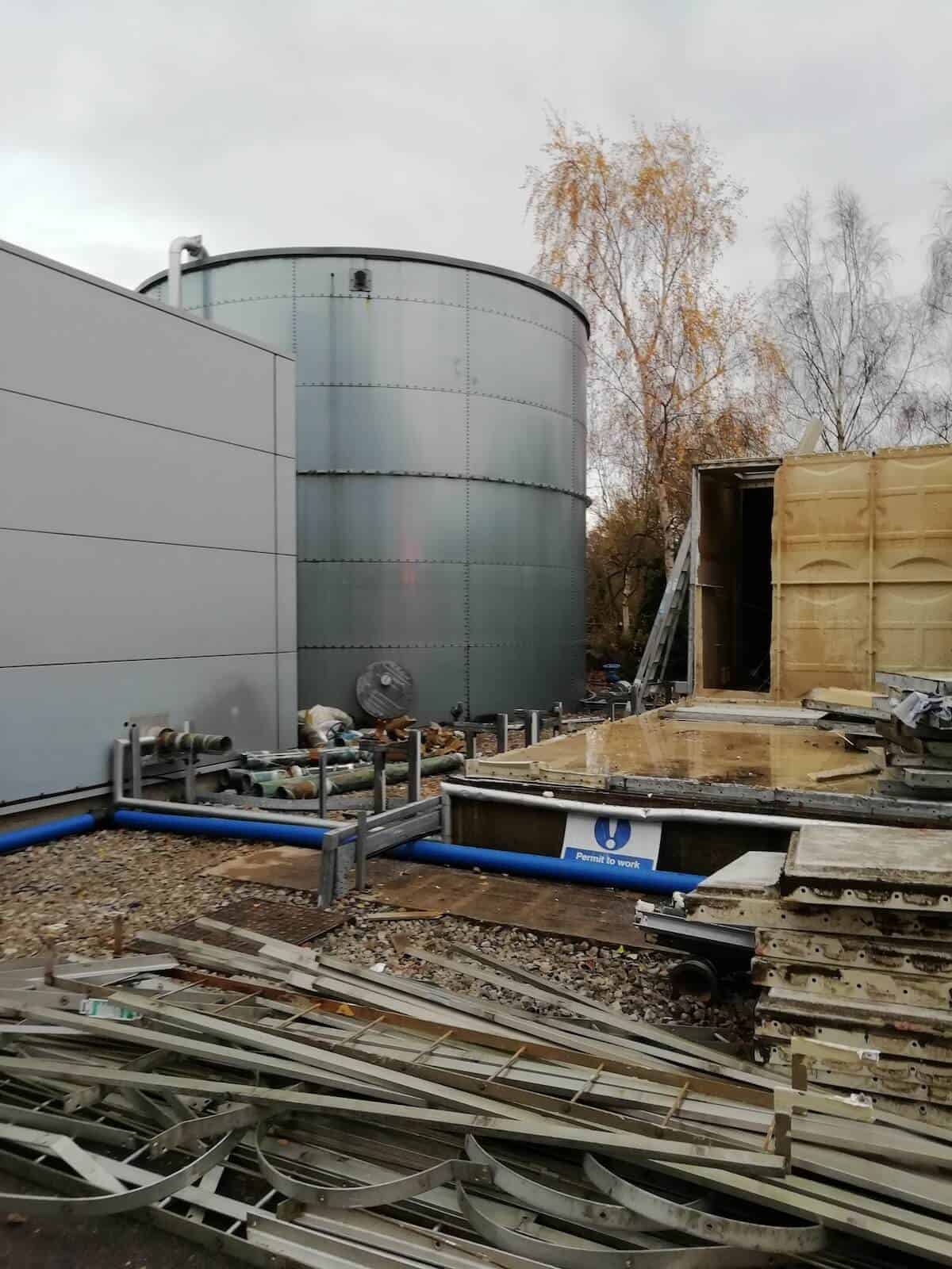 This is one of those jobs that plays to the strengths of the Kimpton team. It’s a project to replace a 40,000 gallon (180m3) cold water tank on an industrial site. Our aim was to minimise disruption to the production plant it supplies, by working to agreed hours, with scheduled mini-shutdowns.