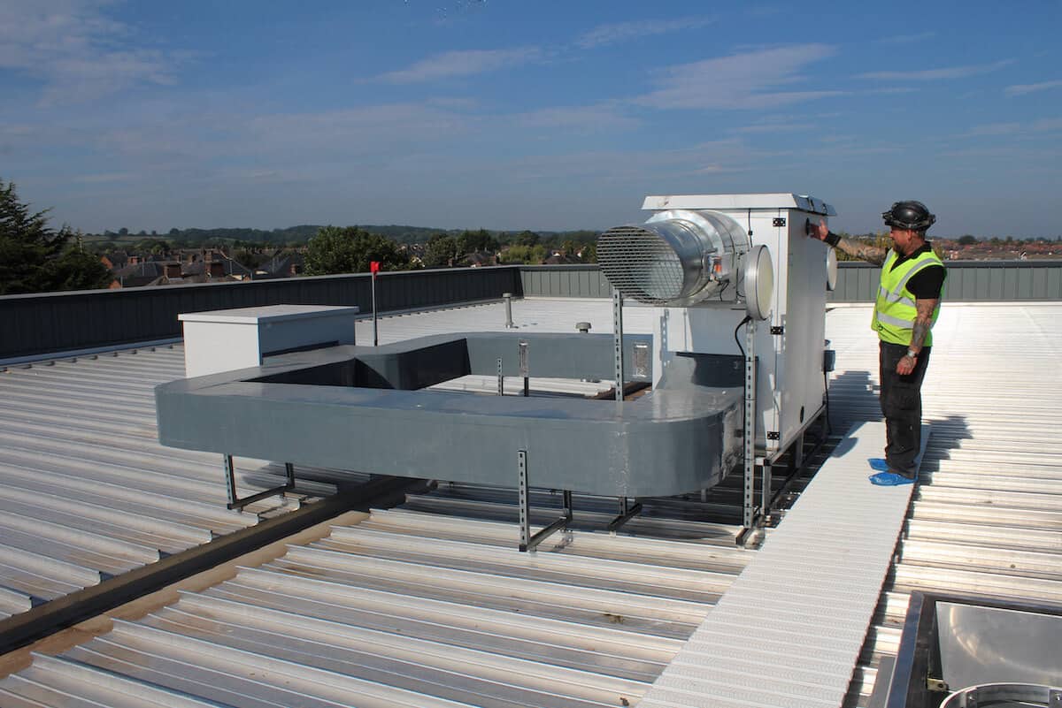 The kitchen, servery area and cooking range provide another challenge for heat retention, whilst maintaining valuable clean fresh air. There is additional mechanical supply throughout the area with a roof-mounted AHU to draw the hot air and cooking smells away from the school and teaching spaces.