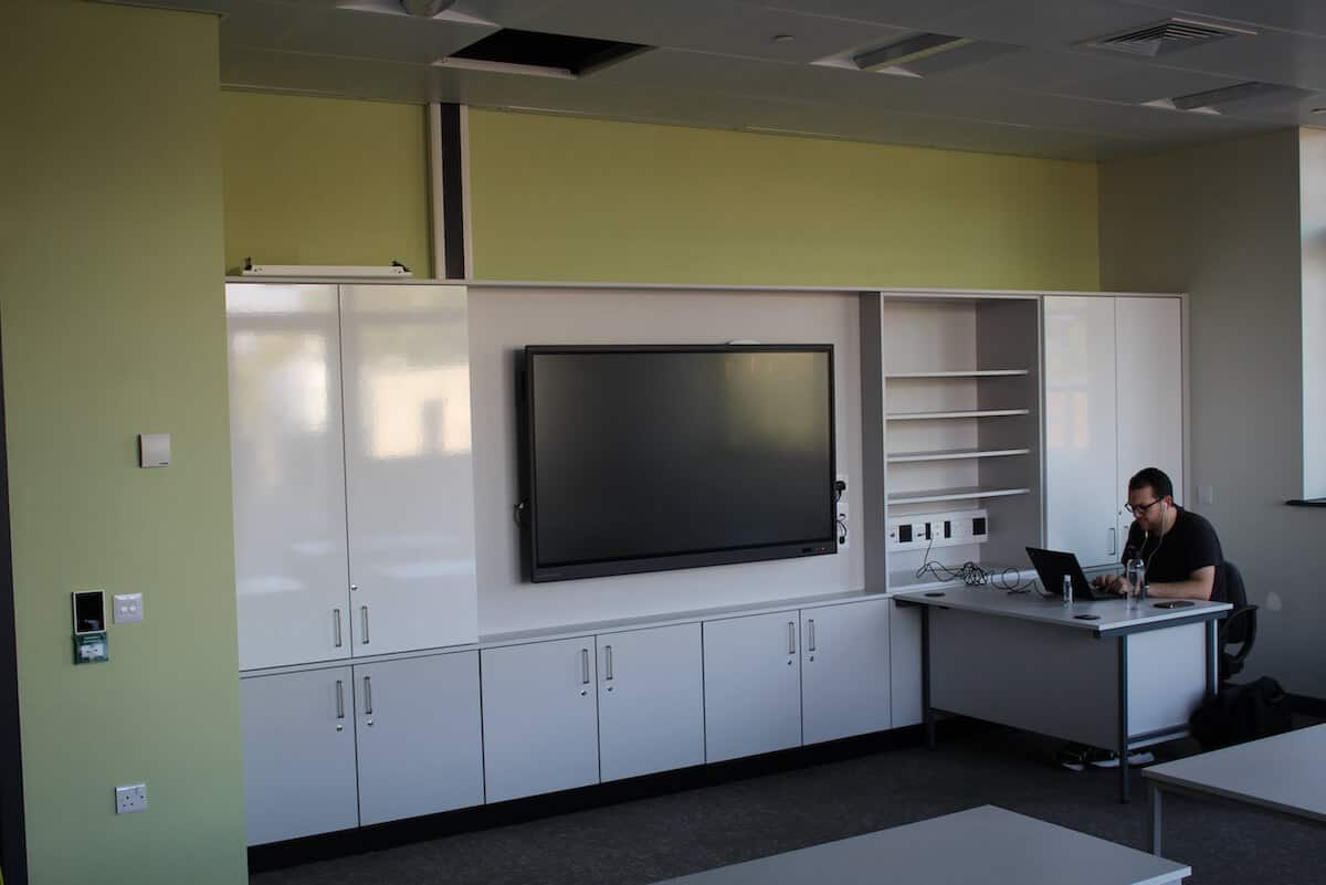 For additional safety, there is also a sprinkler system throughout. This is fed by the external tank, located by the ASHP’s and the external pump room. A detection and prevention system manages all of this. It’s a comprehensive system that will ensure that if fire breaks out in one area of the school, it is very unlikely to spread and there will be plenty of time to evacuate anyone still present in the building.