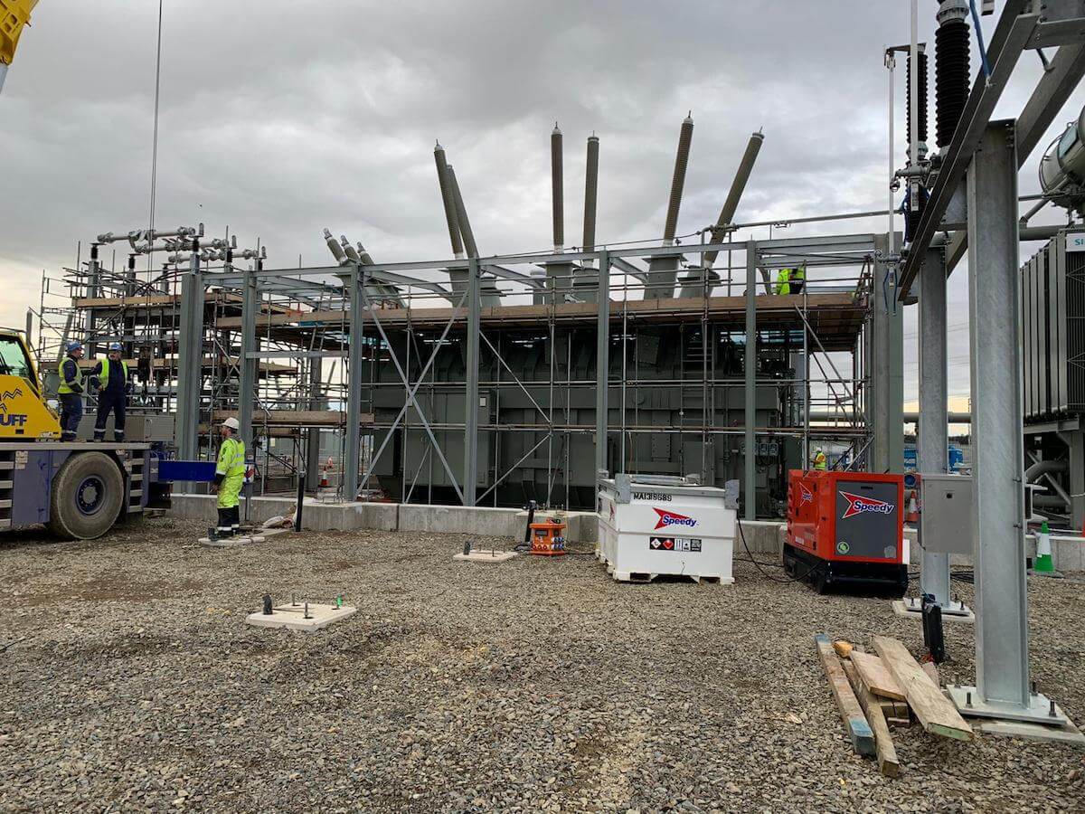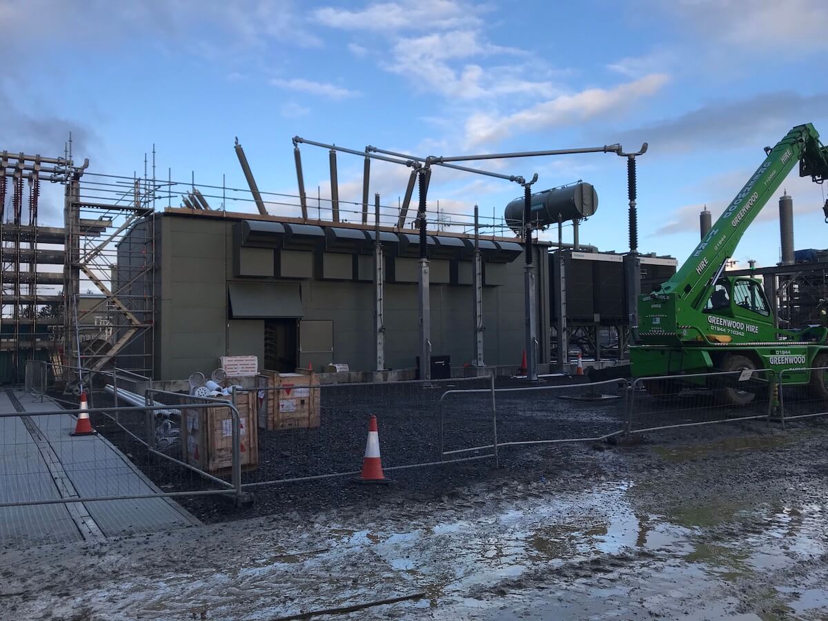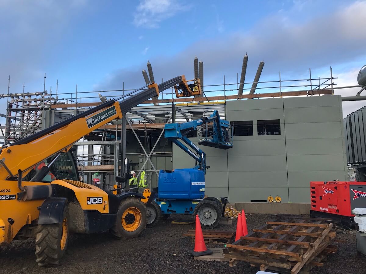 Our work to build all of the hot dipped galvanised Steel frame structures for the three Acoustic Enclosures is now complete and the fitting of the powder coated acoustic cladding is in progress.