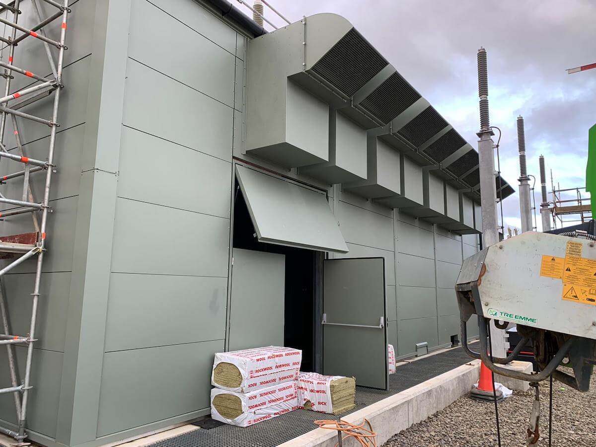 The task of the Acoustic Enclosure is an important one. Firstly, it has to reduce the noise to an agreed level for such a remote rural location with low background noise levels, AND the attenuated ventilation built into the enclosure has to keep the transformer within design working temperatures even on hot summer days.